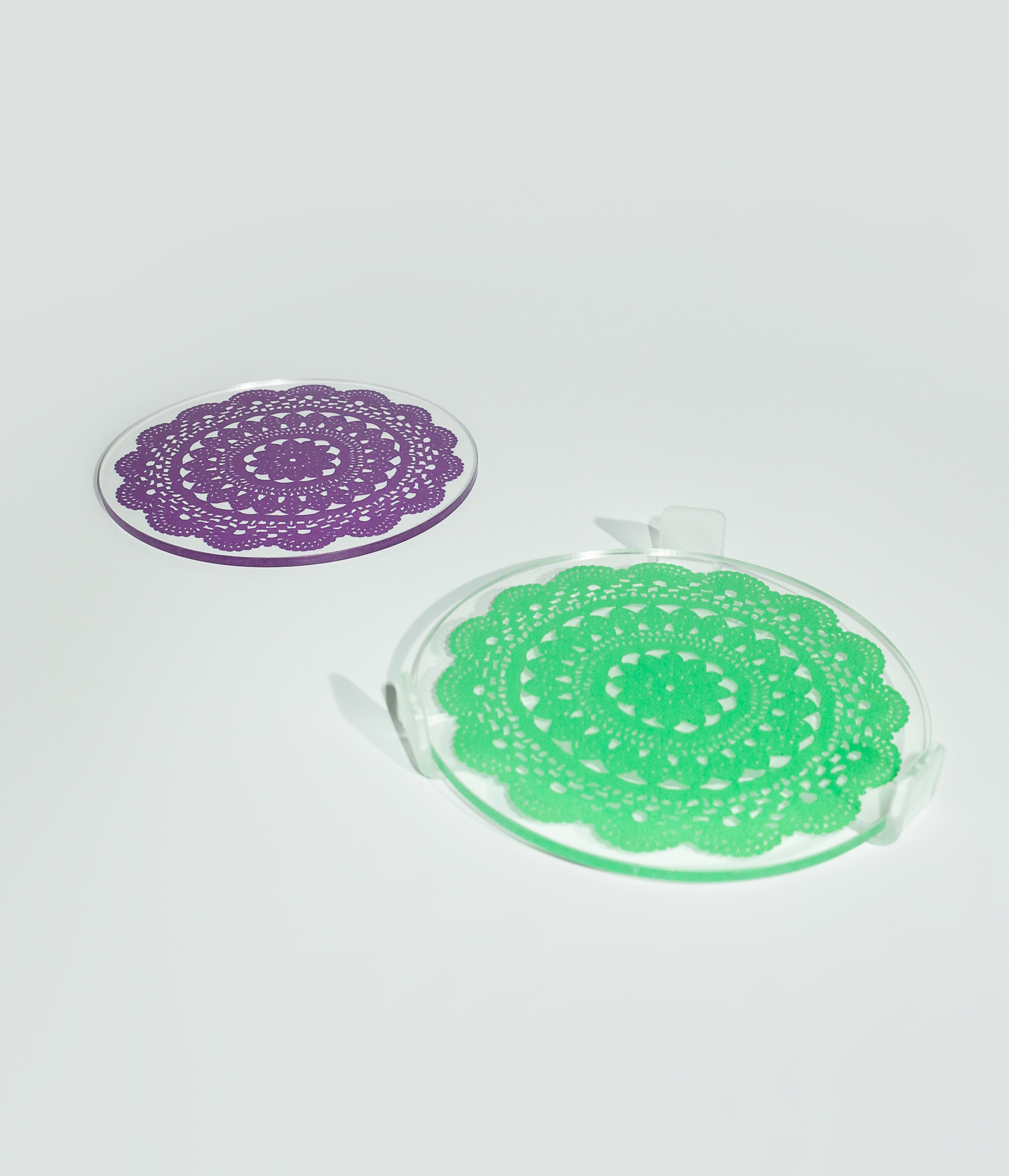Crochet Coaster reinterprets delicate lace patterns in durable acrylic — a charming nod to tradition in a vibrant, contemporary format.