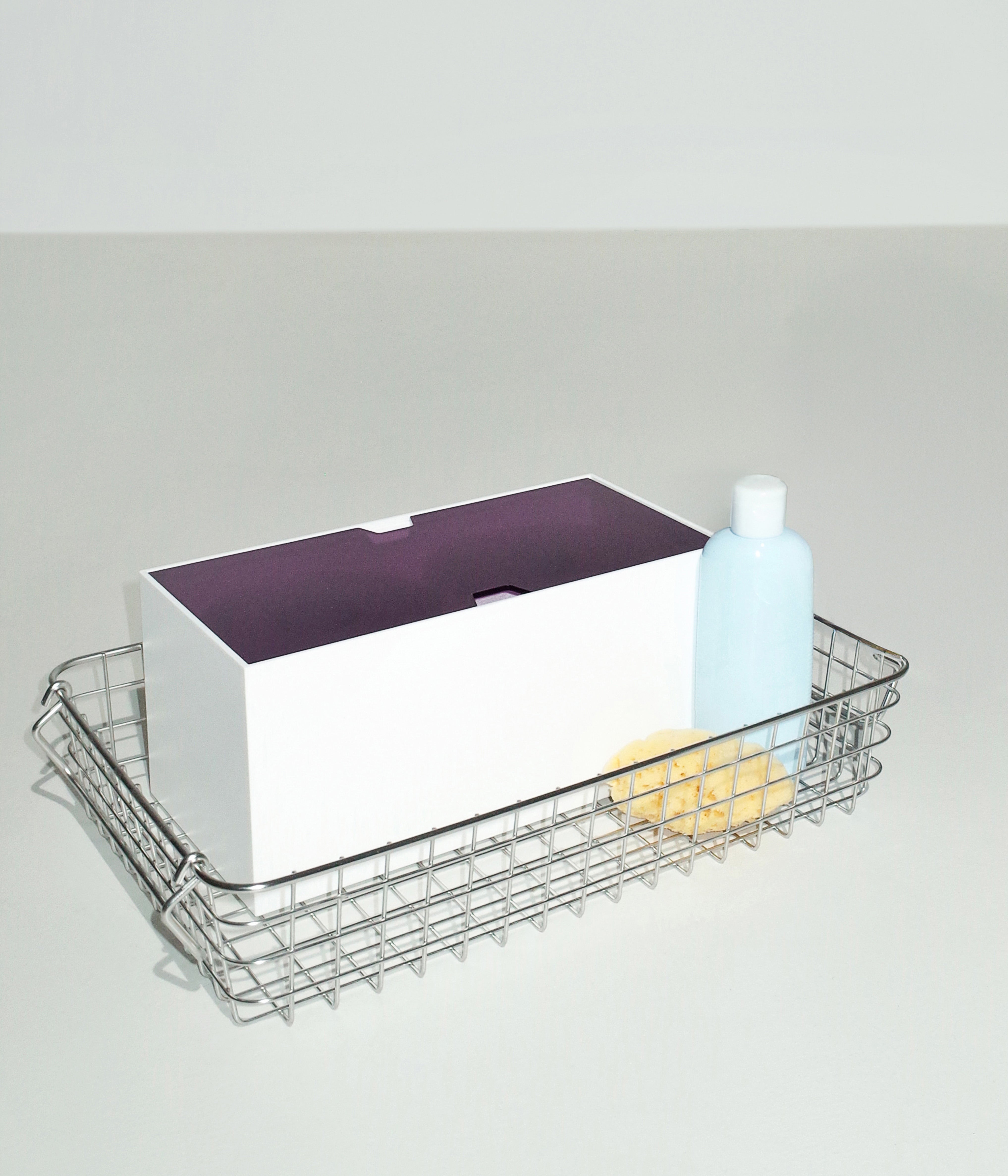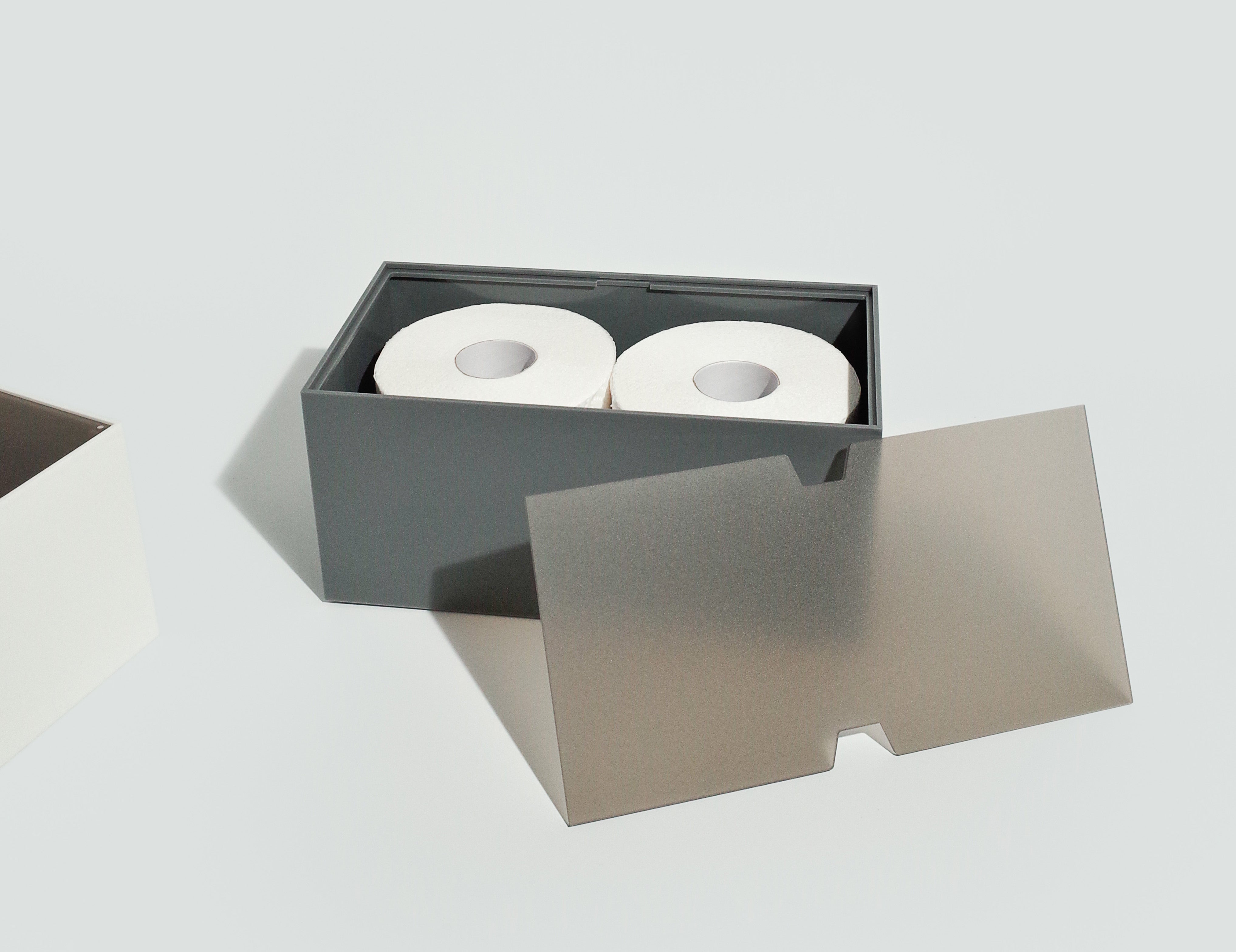Cover Up 2は、ティッシュ、ワイプ、または紙ロールをエレガントに収納するためにデザインされたスタイリッシュなバスルーム必需品です。その洗練されたラインと大胆なカラ―コンビネーションは、最も機能的な空間さえも格上げします。