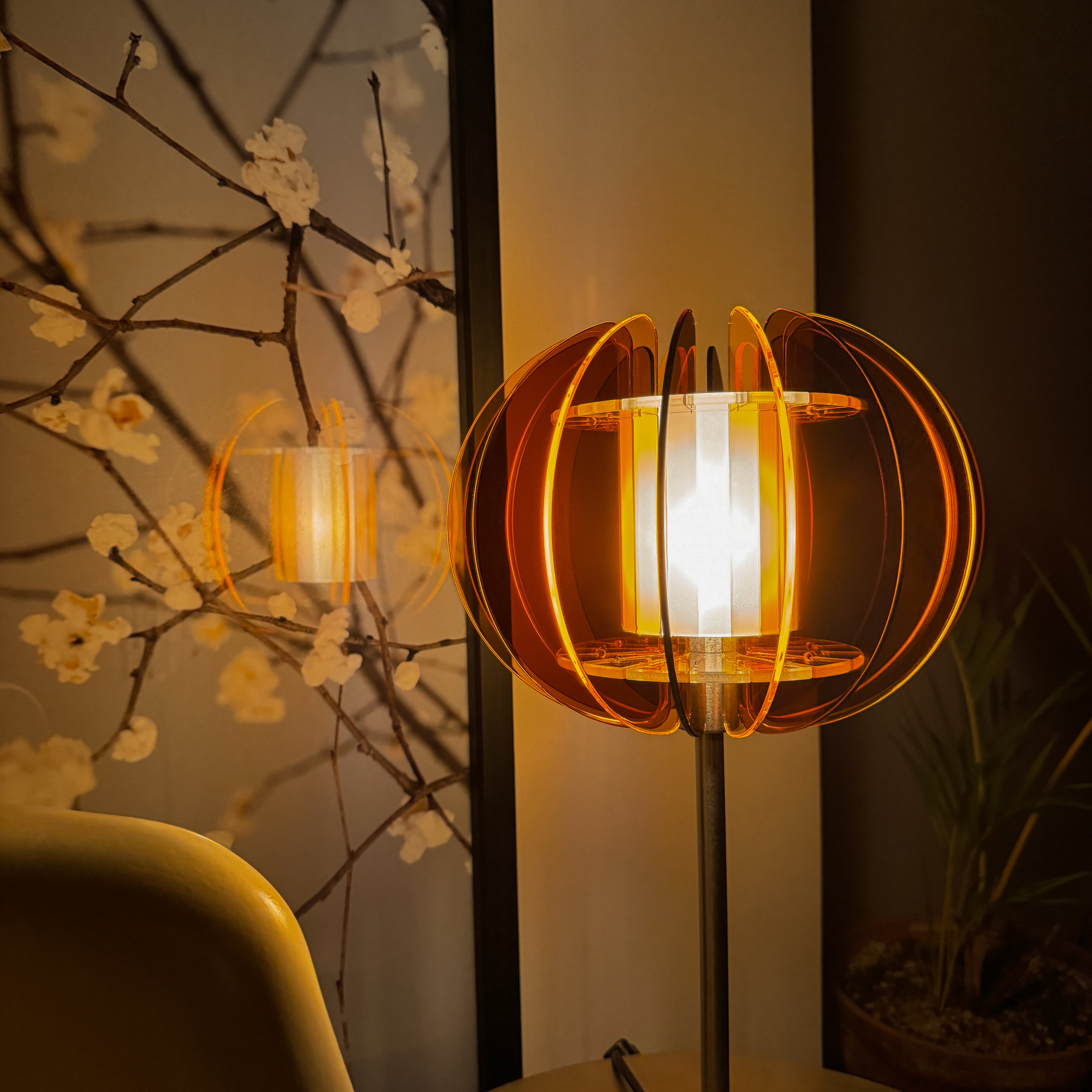 Mini TranShade 1 は、空間に温かみと芸術的な魅力をもたらします。重ねられたアクリルパネルとコンパクトな設計により、照明と装飾の両方の役割を果たします — 洗練されていて、モダンで、個性にあふれています。