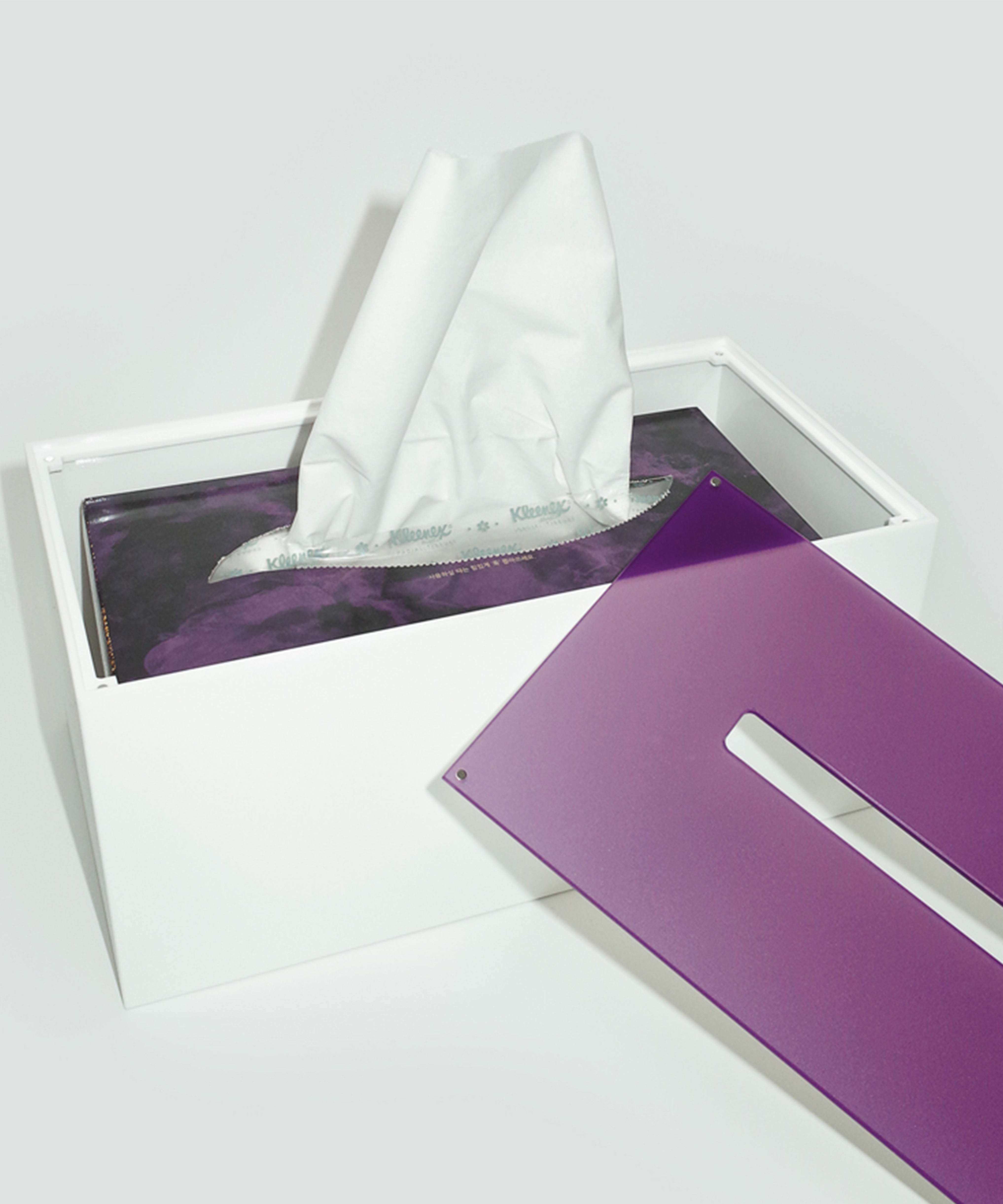 Cover Up 1 elevates the look of basic tissue boxes with its clean lines and bold acrylic construction. Whether in the bathroom, bedroom, or office, it adds a refined accent to any space.