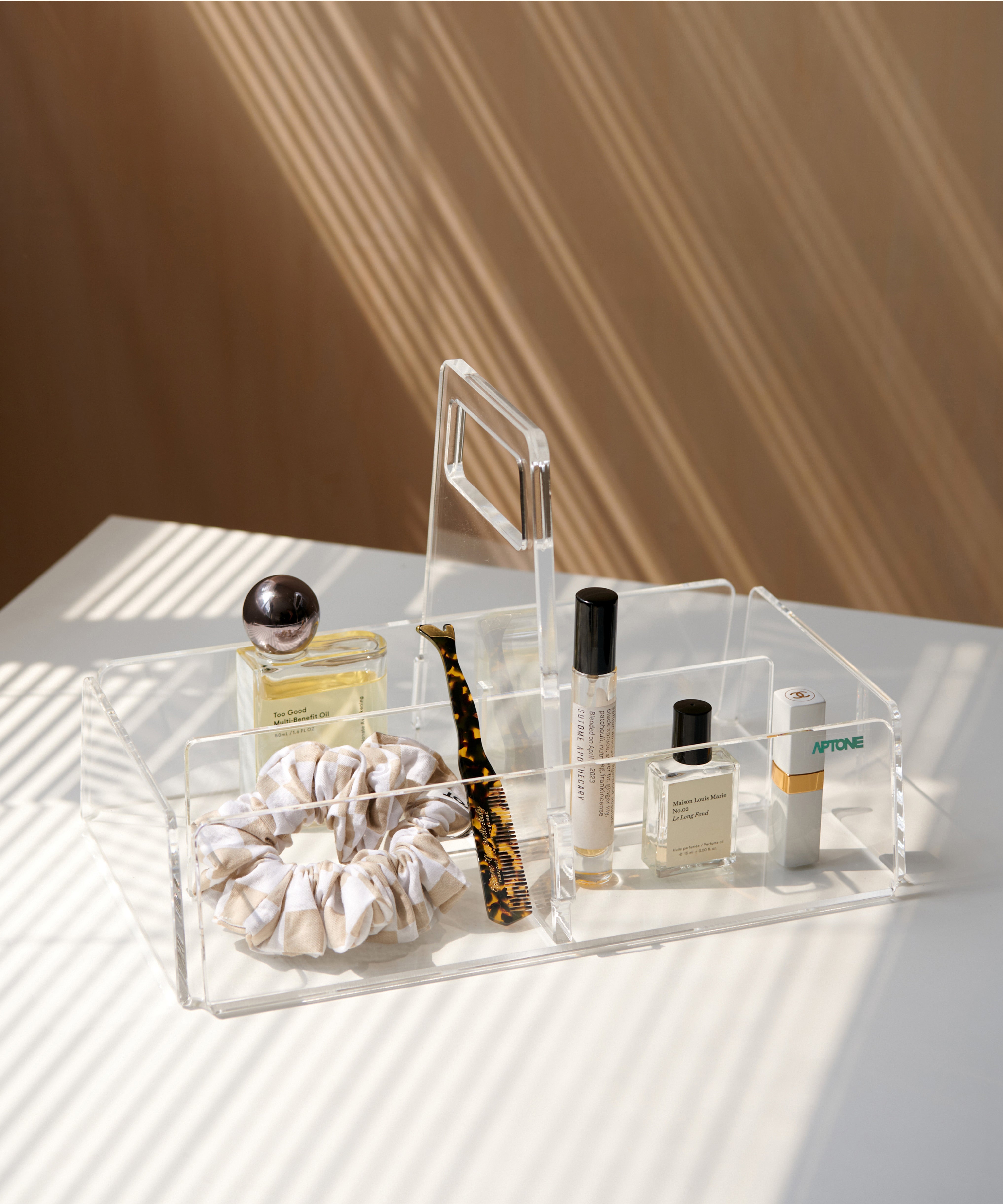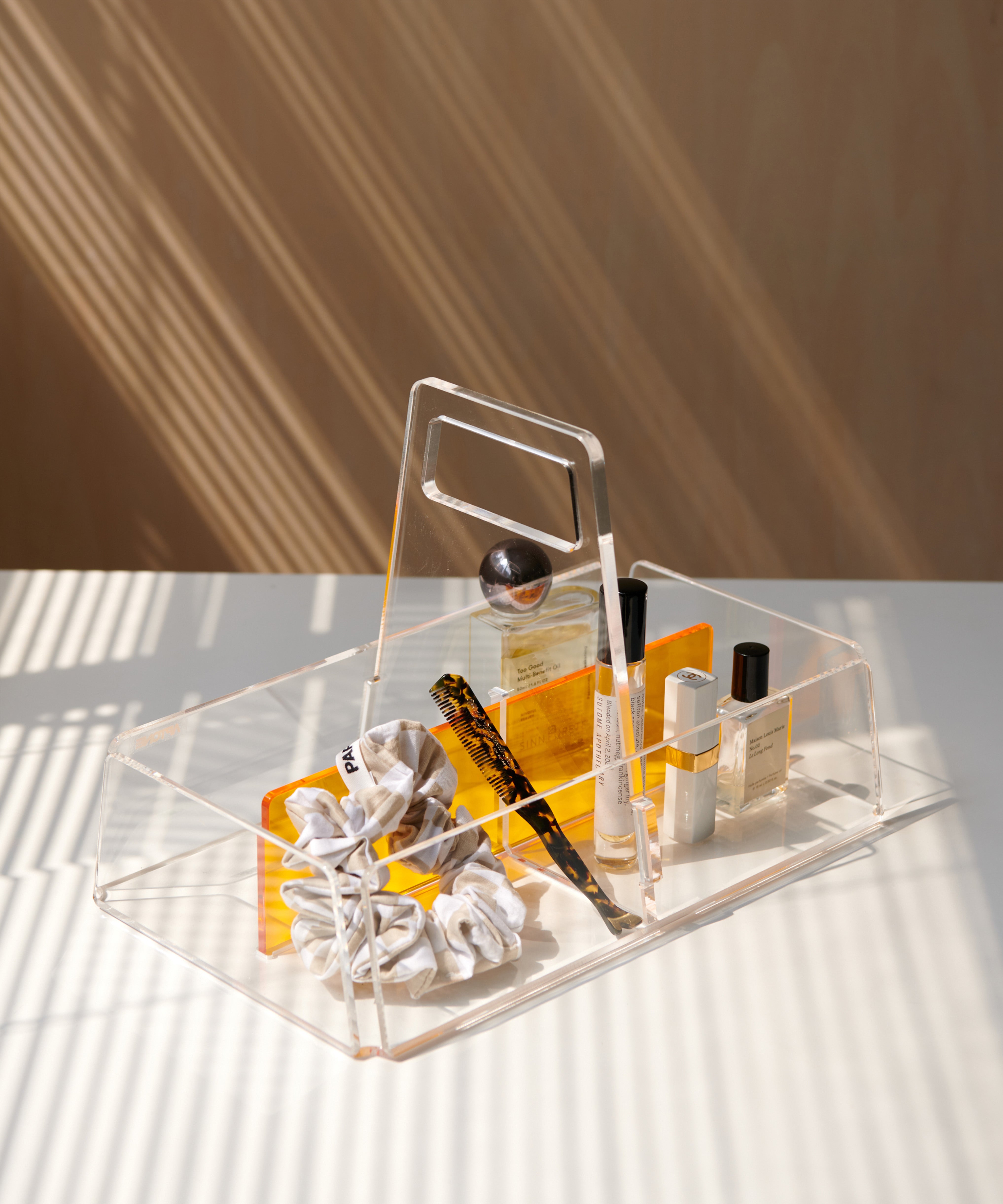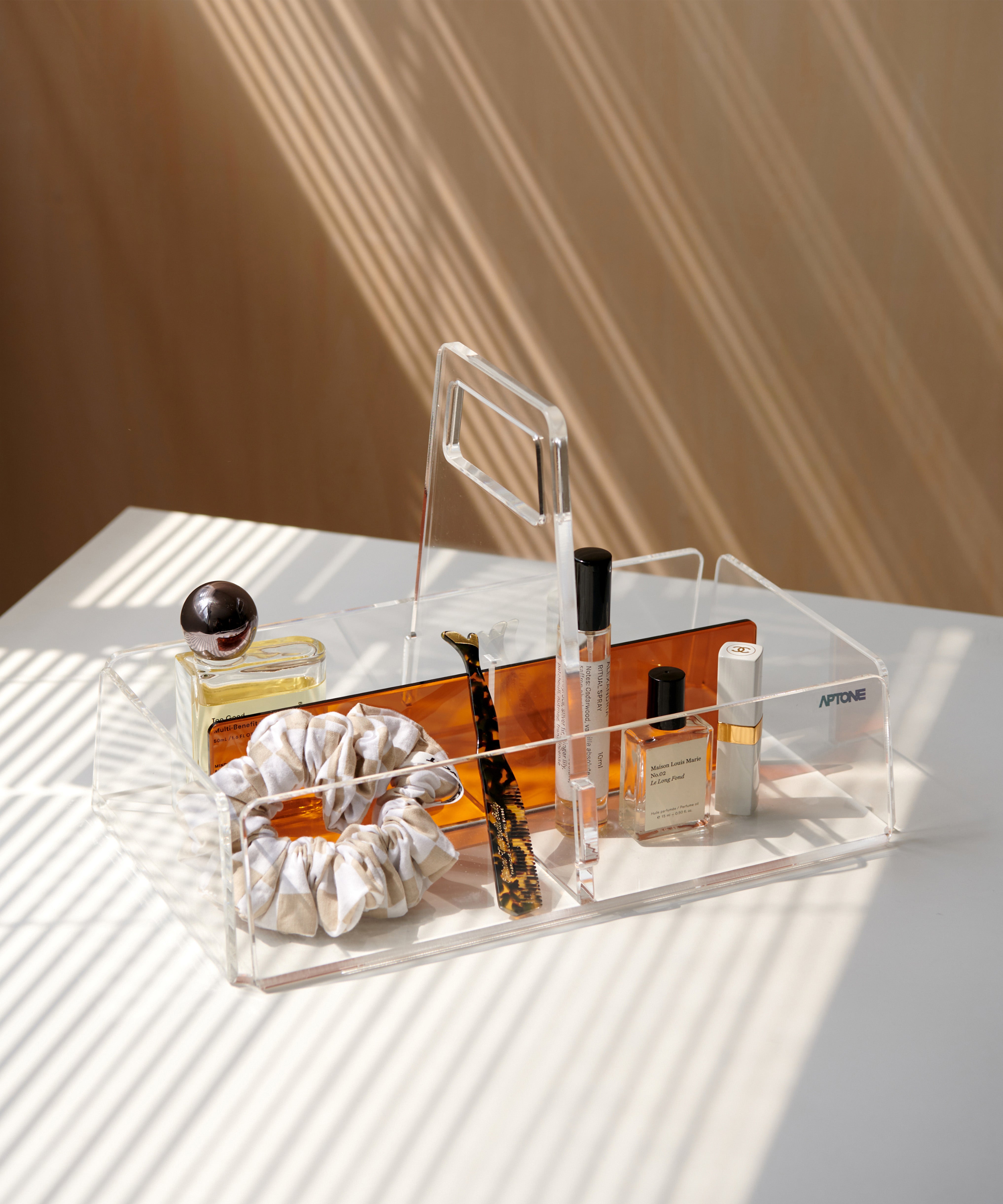 Crafted from high-grade acrylic, Storage Caddy 2 ensures durability and long-lasting performance. Its transparent body adds an aesthetic touch while keeping your items easily visible.