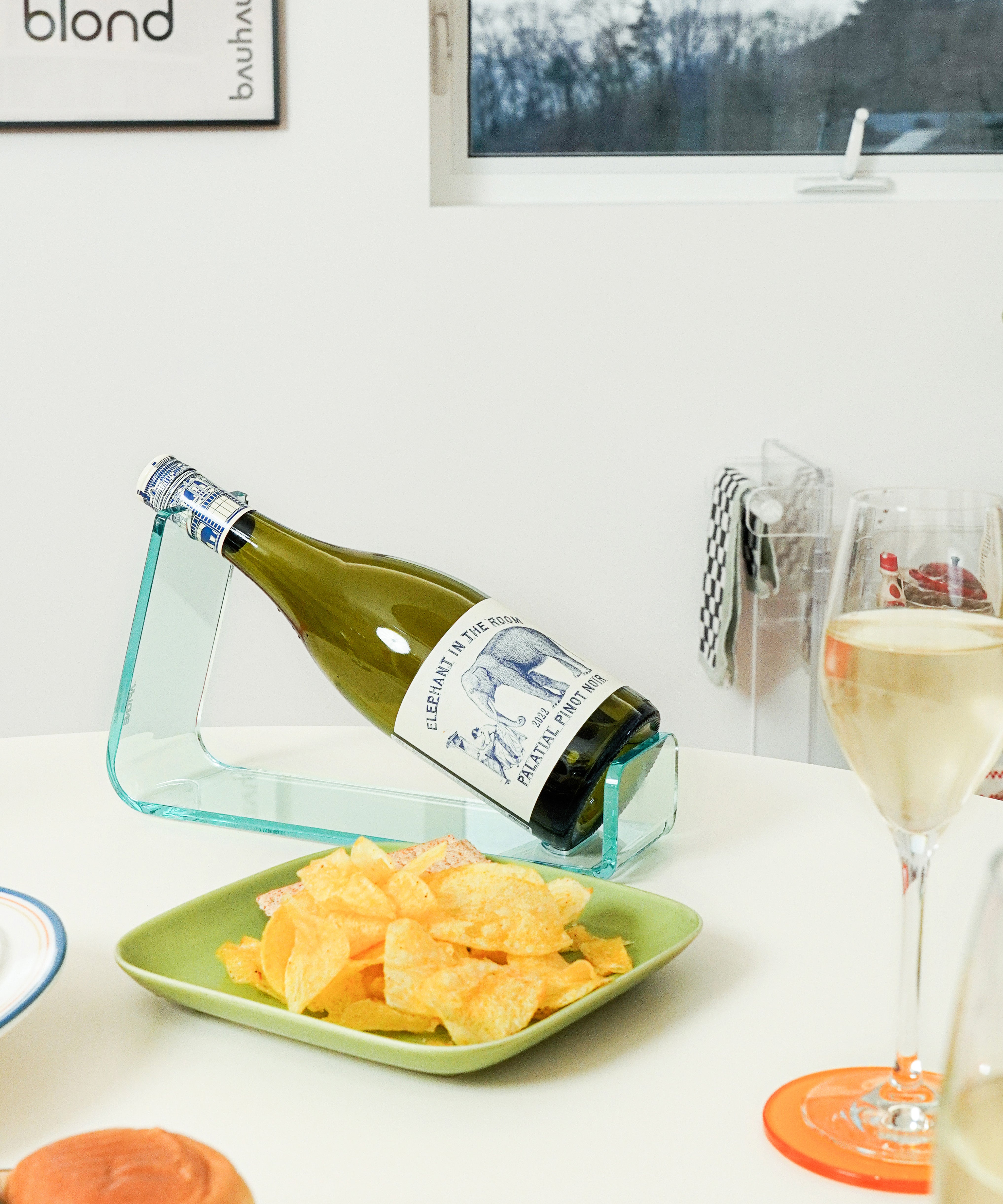 The Winder wine holder features a sleek and minimalist design that complements any table setting. Its compact size and modern look make it a practical and aesthetic addition to your kitchen or dining space.