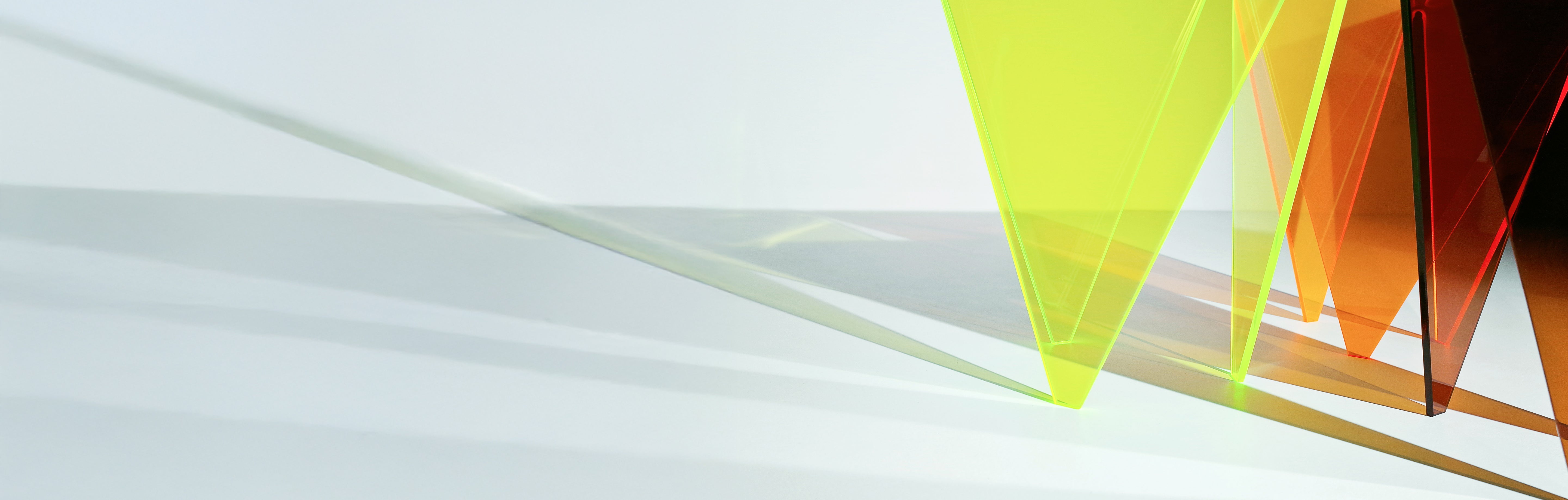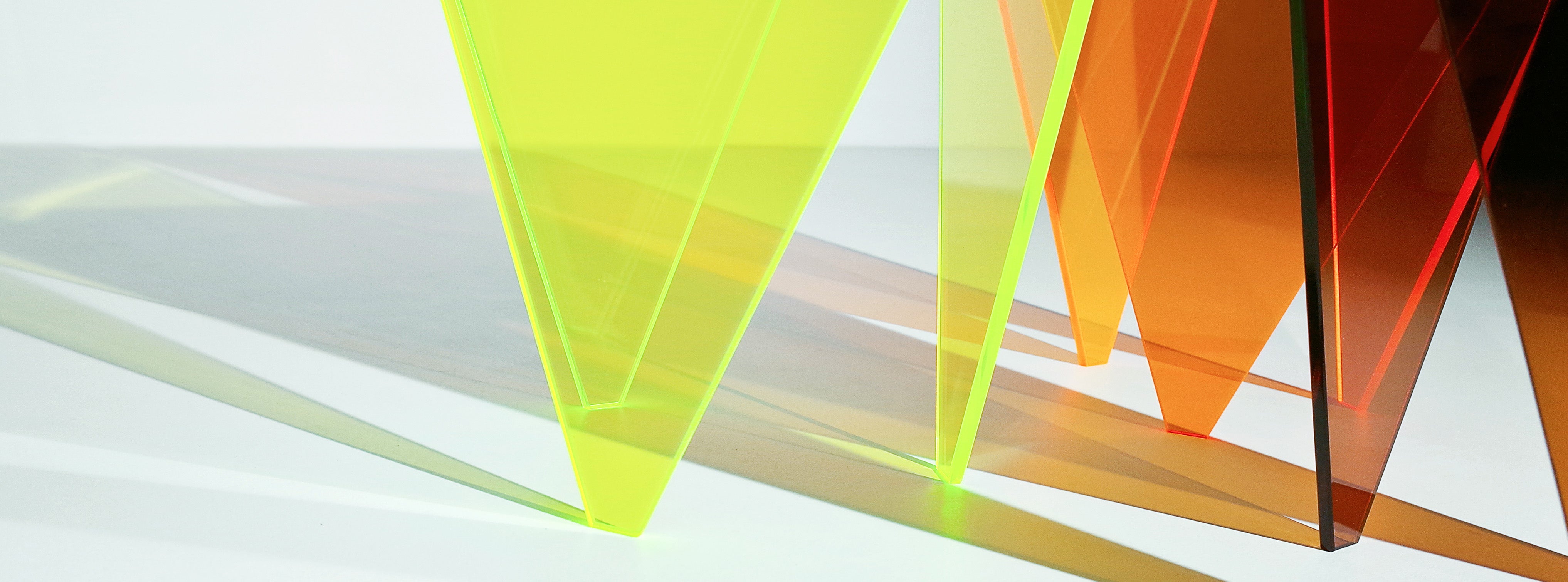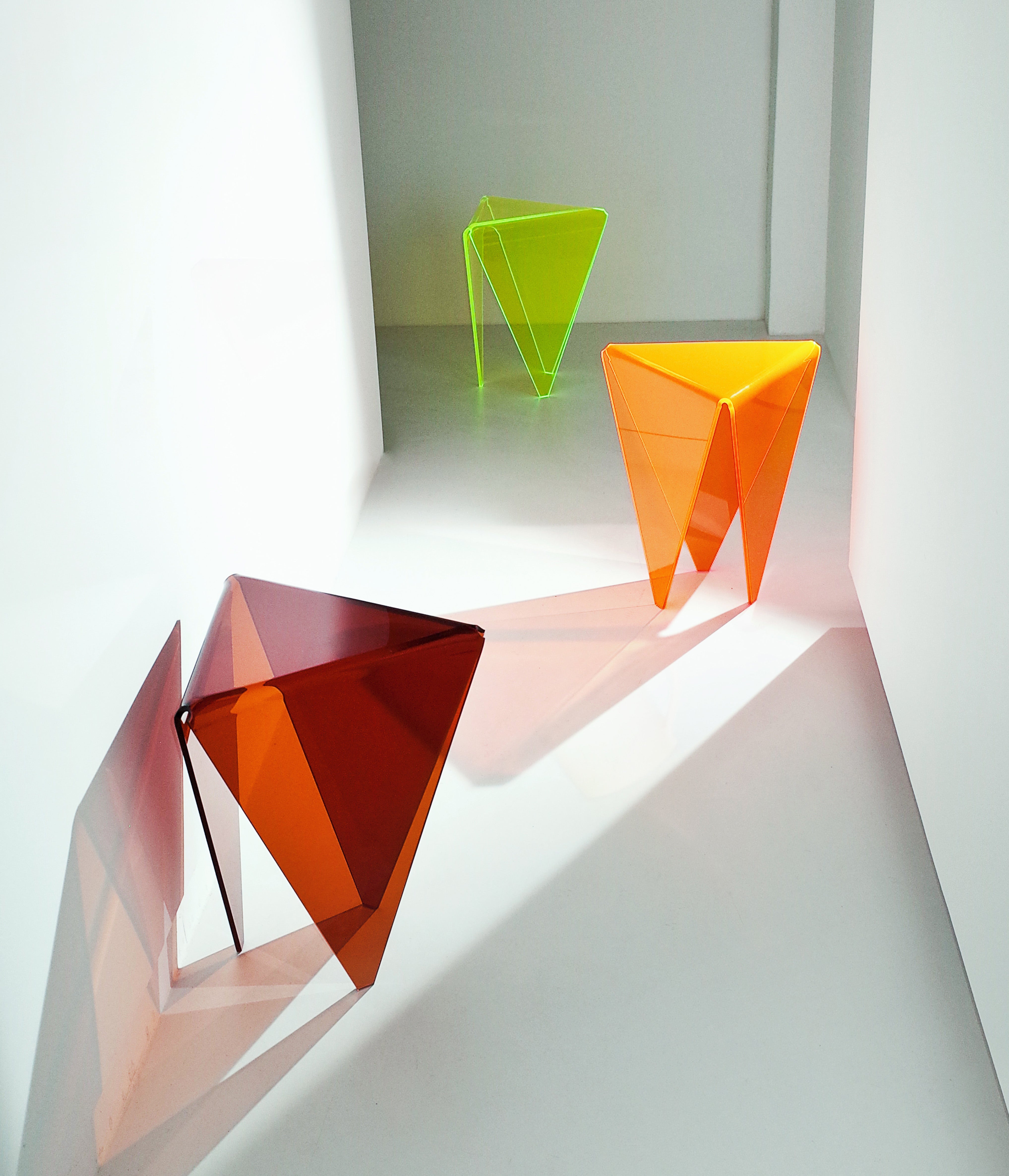 Crafted from vivid translucent acrylic, the triangle form casts rich shadows and reflections, making it a design statement even when not in use.